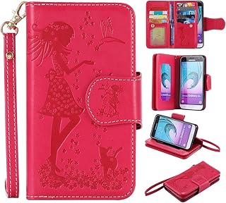 Nancen Compatible avec Samsung Galaxy J3 J310 / J3 (2016) (5,0 Pouces) Coque, Fille et Oiseau Motif Flip Étui Housse Wallet Couleur Solide Case Accessoires de Téléphone