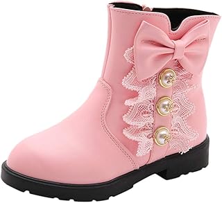 Bottes Cuir Fille Bottine Vernies Montante Bottes Haute Fourrées Chaud Bow Dentelle Floral Bottes Neige Fille Ado Enfant Bottine Haute Hiver Chaudes Bottes Chaudes Pas Cher Bottes Noir Rose