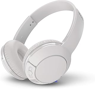 TCL MTRO200BT Ecouteurs sans fil circum-aural (Bluetooth 4.2, coussinets d'oreille en cuir à isolation phonique, autonomie de 20 heures, charge rapide, pliable, commandes intégrées), blanc cendre