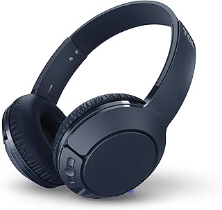 TCL MTRO200BT Ecouteurs sans fil circum-aural (Bluetooth 4.2, coussinets d'oreille en cuir à isolation phonique, autonomie de 20 heures, charge rapide, pliable, commandes intégrées), Bleu Ardoise