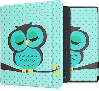 kwmobile Étui liseuse Compatible avec Kobo Forma - Housse avec Rabat magnétique en Simili Cuir - Chouette endormie Turquoise-Marron-Menthe glaciale