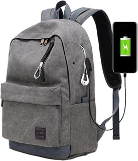 Demarkt 1 Pcs Portable Toile Sac à Dos d'école Ordinateur avec Port de Chargement USB Externe Housse de Pluie imperméable d'école Sac de Voyage Loisir Garçon et Fille 44 * 32 * 17cm Gris