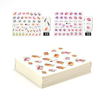 Meicailin Nail art 50 Pcs Stickers Fleur Rose Water Decal Autocollant Ongle Tips Guide French Decoration Decalque de L'eau Manucure Nail Art Tattoo Sticker Plume