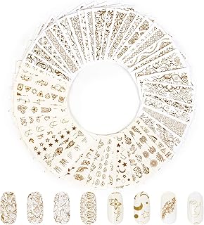 Jubaopen 40 Feuilles Nail Stickers Nail Art Stickers Decal Water Transfers for Women Girls Kids Manucure DIY ou Nail Salon (6.2 × 5.2cm, Golden)