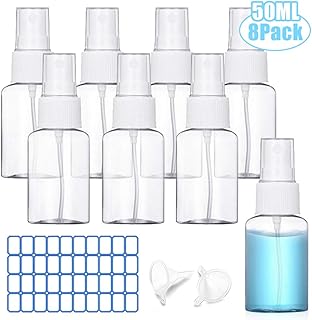 Flacon Vaporisateur Vide Flacon Pulvérisateur,Atomiseur Parfum Transparent,Flacon Spray Vide,Ensemble de Flacon de Voyage Portable avec 2 x entonnoirs et 1 x étiquette (8 * 50ml)
